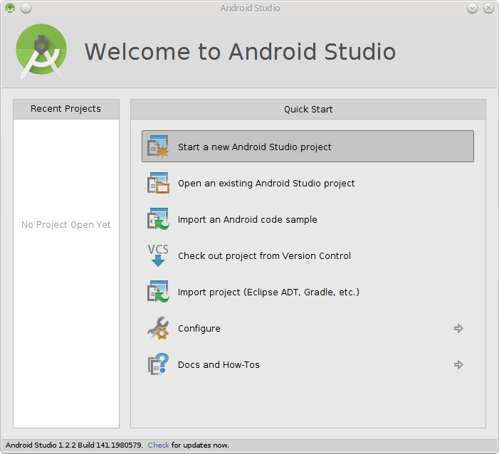 You have successfully installed Google’s Android Studio on your Linux Mint 17.1 KDE PC. From now on, you should make it a habit to check for any updates to Android Studio (by clicking on ‘Check’) every time you launch it. Now close Android Studio by clicking on the close button (the ‘x’ button) on the top right hand corner of the window.