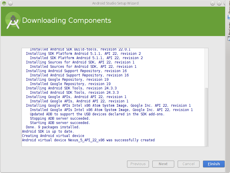 Now it’s time to check what has been installed so far. On the SDK Manager window all installed packages are marked ‘Installed’ under the ‘Status’ column. Note that SDK packages has already been installed for Android M – the latest Android version (API 22) from Google. Other packages may have already been installed – just check the ‘Status’ column.