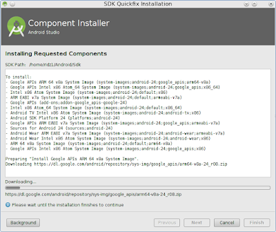 The SDK components mentioned in the ‘Verify Settings’ window will begin downloading as shown below. Wait for the download and installation of the SDK components to finish.